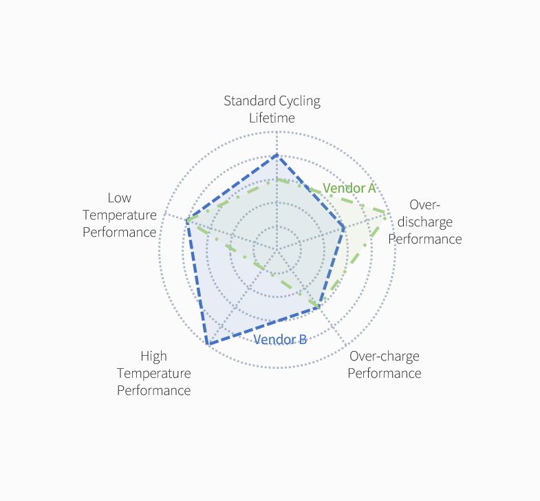 Even through the technical specification sheets looked similar, cells sourced from two vendors exhibit drastically different tolerance at elevated temperature. Detailed analysis of cell material revealed the different high temperature performance was correlated with different grade of LCO cathode materials used by the two vendors. In addition, CarlBerk provide more comprehensive comparison of two candidate cells from multiple aspects to assist client in cell selection.